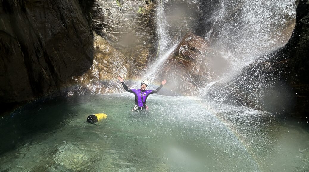 Warm eingepackt im Neoprenanzug wird in die Schlucht eingestiegen. Das kalte, glasklare Wasser umspült die geschliffenen Felsformationen. Auf dem Hosenboden geht es mit der Strömung über natürliche Rutschen. Am Seil werden Wasserfälle überwunden. Die natürlich geformten Steinbecken locken zum kühnen Sprung. Nirgendwo haben Farben eine solche Intensität.