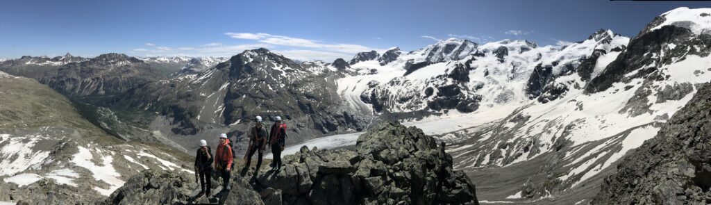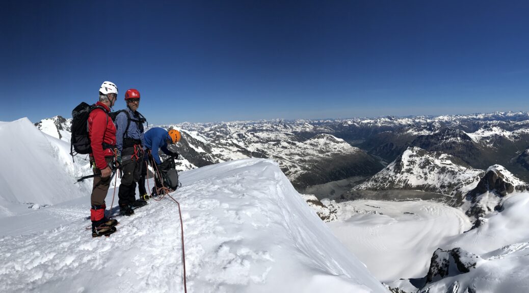 Raus aus dem Alltag, das ticken der Uhr verstummt. Sonne, Wind und Wetter bestimmen das Vorankommen am Berg. Spitze Steigeisen auf klirrendem Gletschereis sichern den Schritt auf jedem Höhenmeter. Der erreichte Gipfel mit seiner atemberaubenden Weitsicht lässt die Spannung hinter sich und beruhigt den Puls.